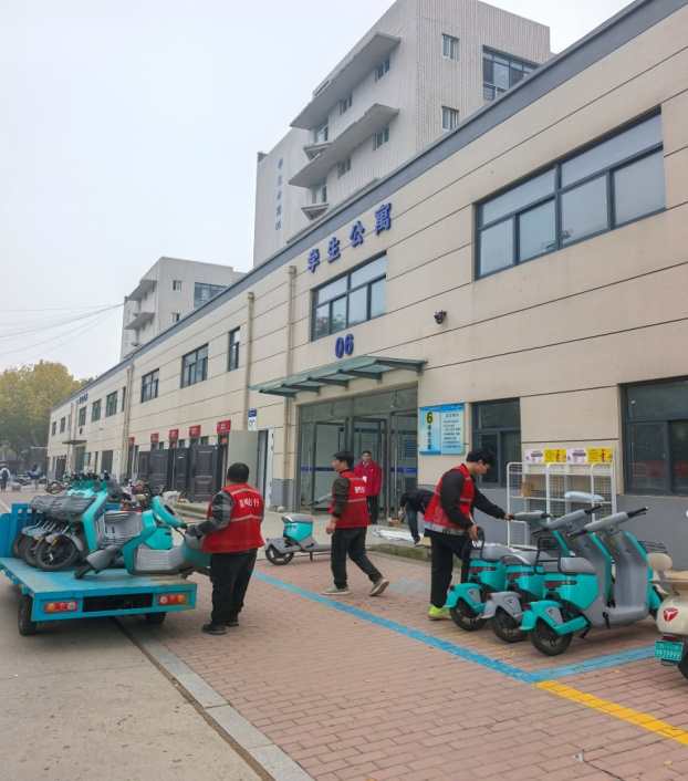 2025年10月30日,为深入贯彻“以学生为本”的服务理念,保障“一站式”学生社区建设,党委保卫工作部聚焦“一站式”学生社区非机动车乱停乱放问题,开展专项整治行动。